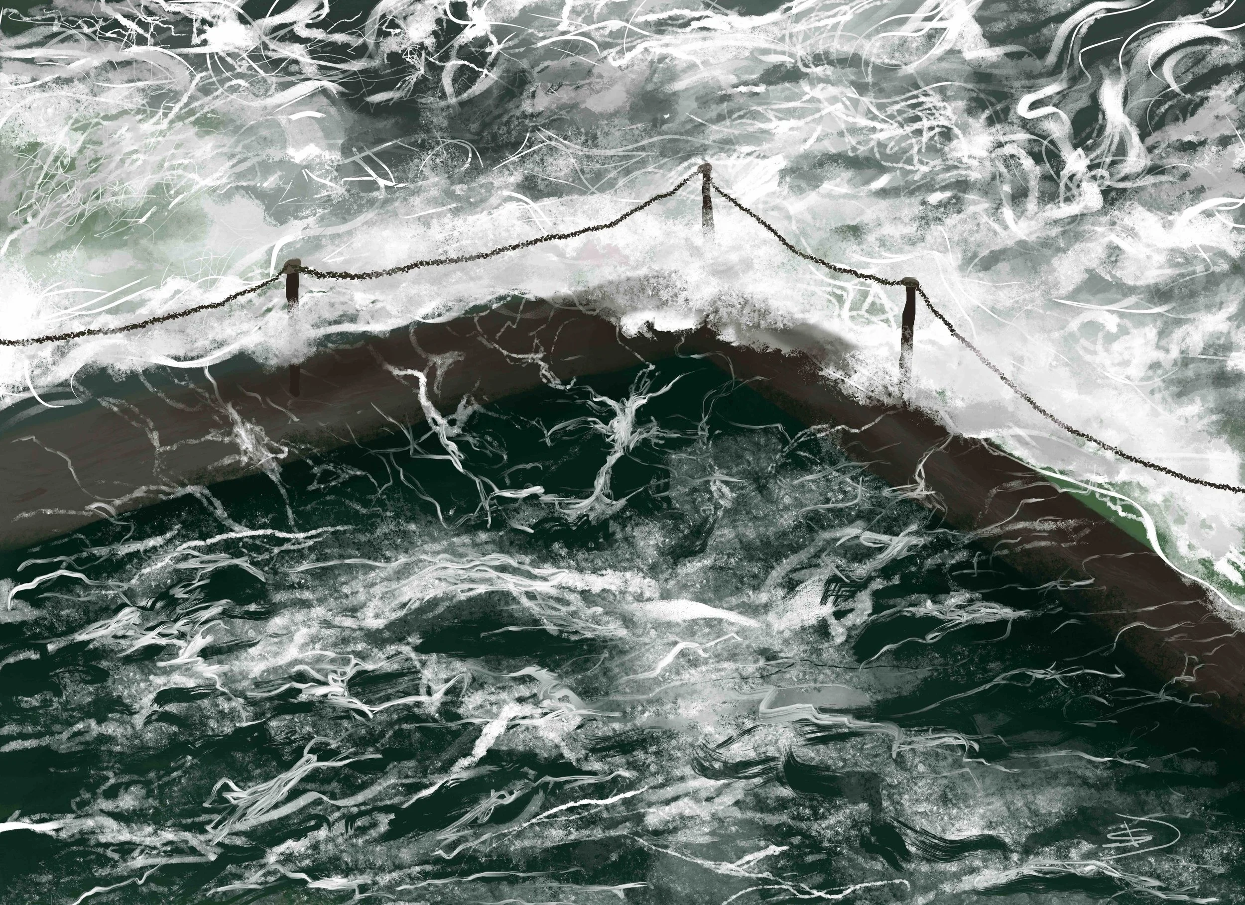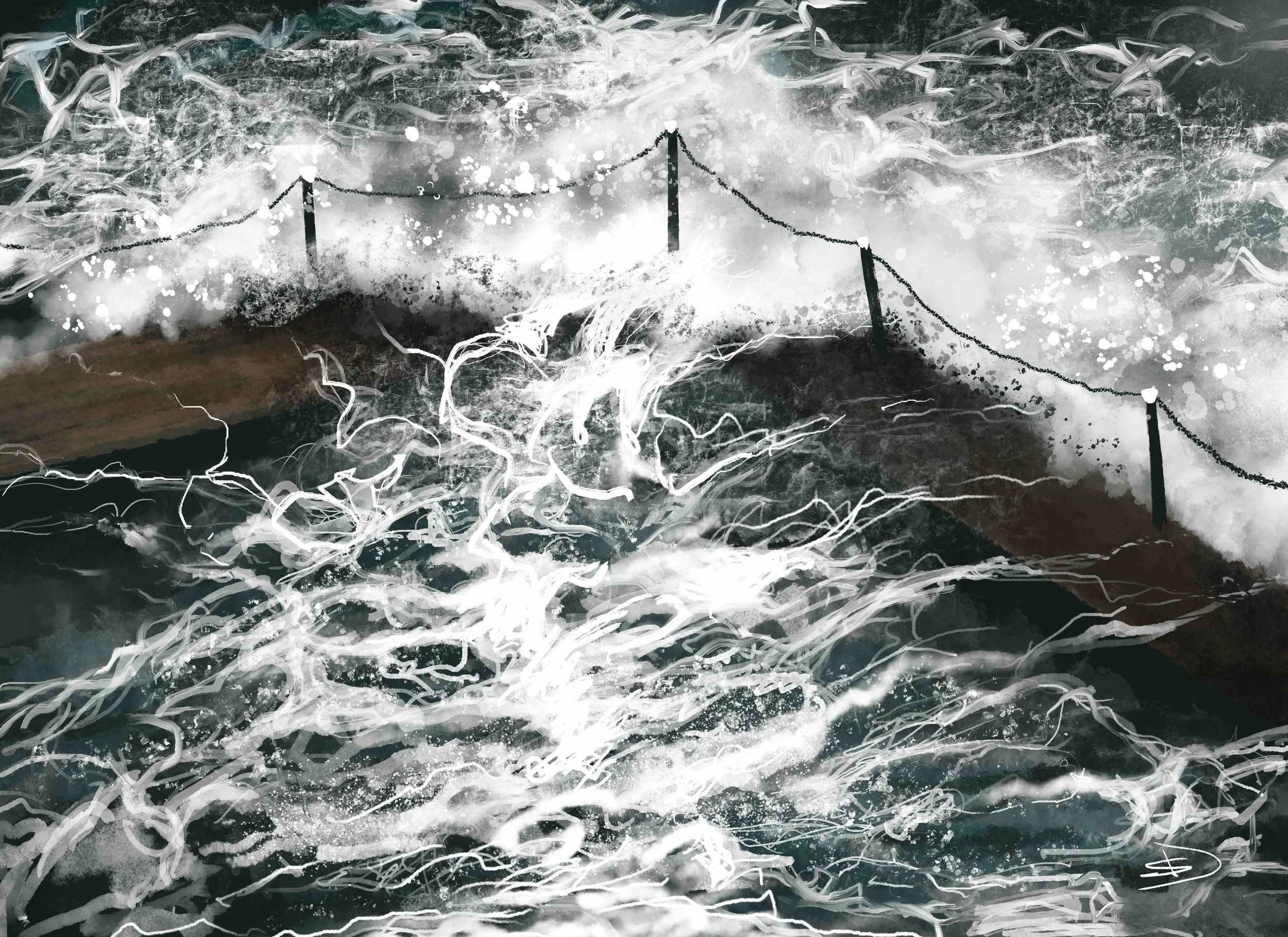 Rolling up. Crashing down. Unclenching white knuckles into crystalline hues.